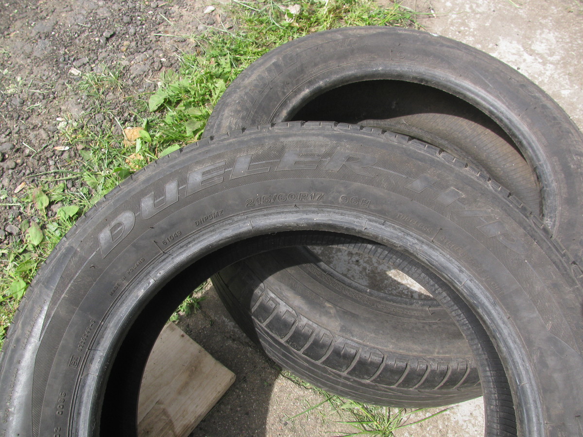 Летние шины Bridgestone Dueler H/P 215/60R17 96H, б/у, 2 шт, остаток протектора 3 мм, 80 руб за комплект, можно поштучно