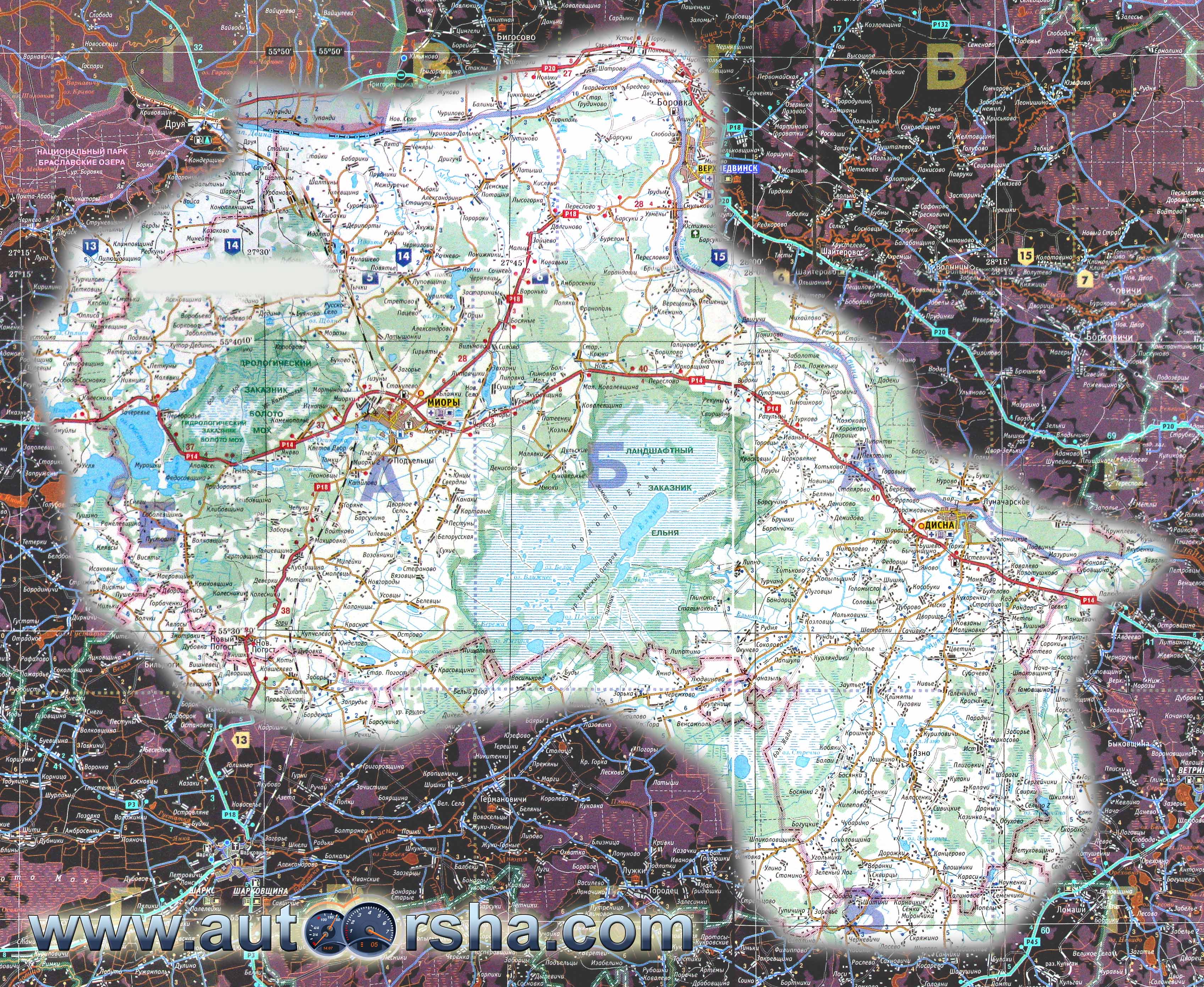 Подробная карта Миорского района (1,5 МБ)
