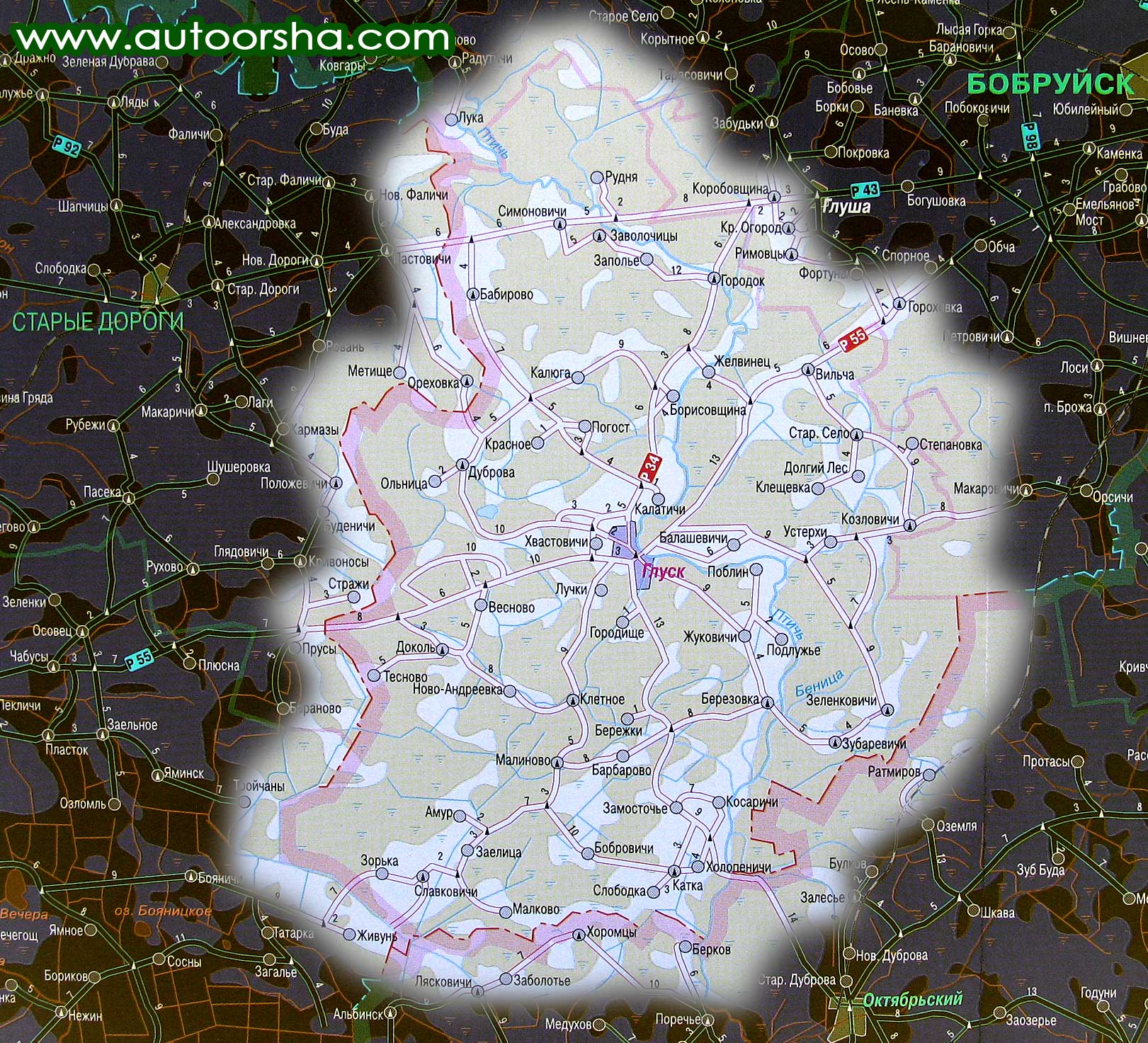 Подробная карта Глусского района |