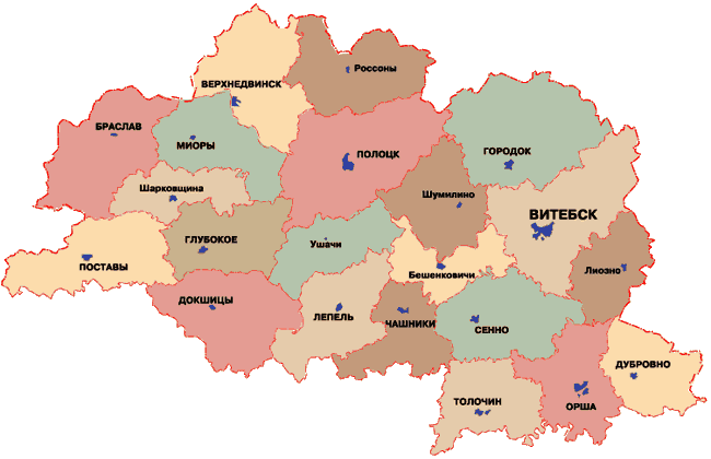 Витебская область - подробная карта районов Витебской области