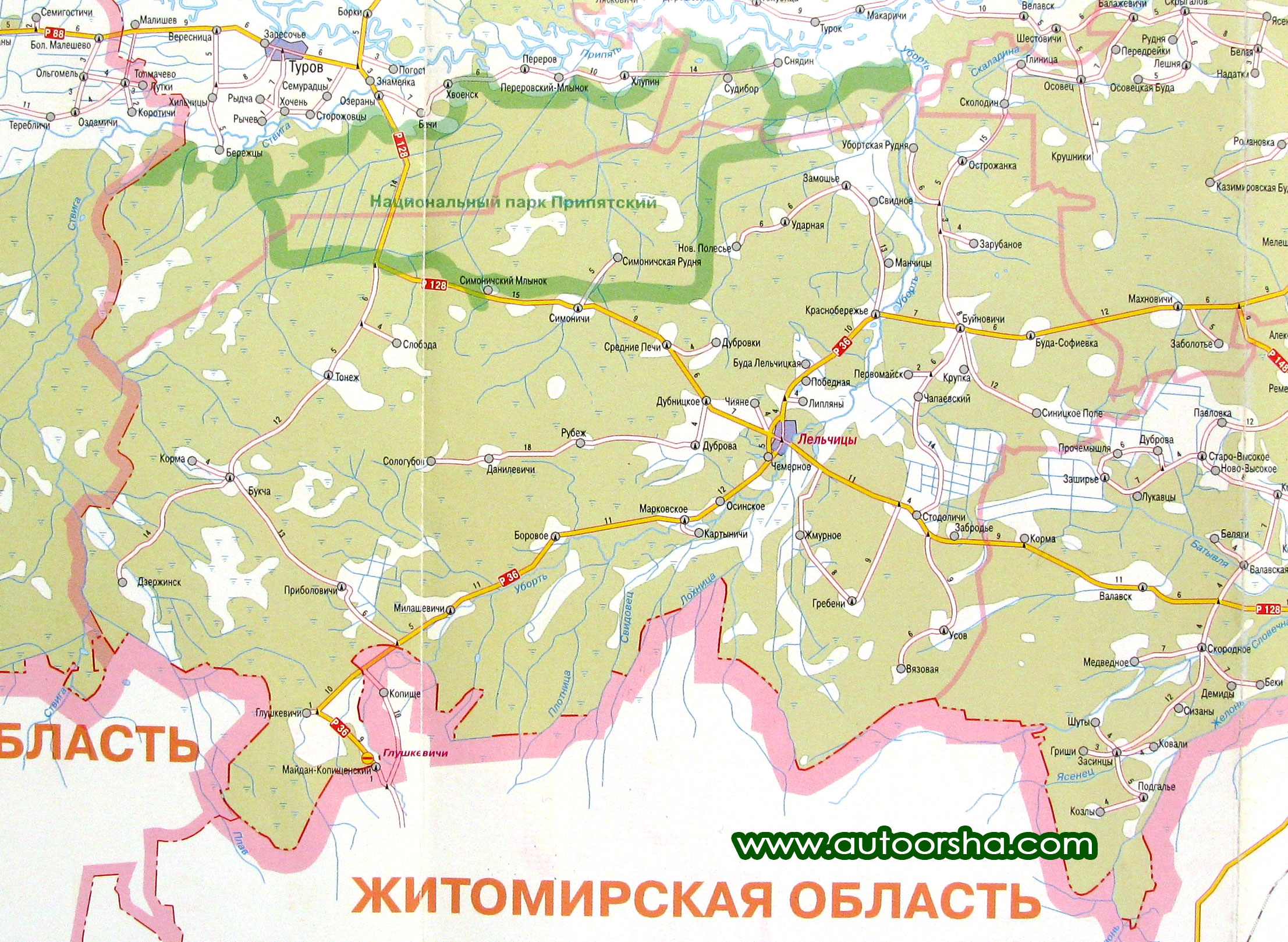 Подробная карта Лельчицкого района |